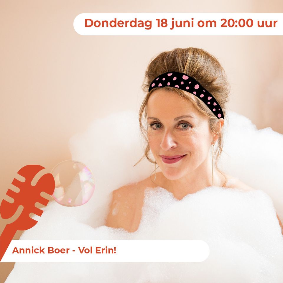 In Vol erin! stort Annick Boer zich vol overgave in haar derde cabaretvoorstelling. Met haar kenmerkende zelfspot, sprankelende humor en prachtige liedjes brengt ze een warme, geestige avond vol verhalen die raken en verrassen. Bekend van onder meer Kanniewaarzijn, Wie is de Mol?, LOL én tegenwoordig ook van De Verraders, groeit Annicks populariteit met de dag. In Vol erin! laat ze opnieuw zien waarom ze inmiddels niet meer weg te denken is uit het theater. Met live muziek van Jean Louis van Dam wordt het gegarandeerd een avond Boer op z’n best