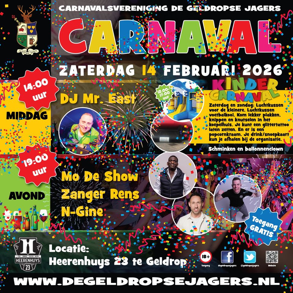 Zaterdag 14 februari vanaf 14.00 uur met DJ Mr. East. Luchtkussen, voetbalkooi Schminken en ballonnenclown. Kom lekker plakken, knippen en knutselen in het koepelhuis. Je kunt een glittertattoo laten zetten. En er is een popcornkraam. Haal je drink/snoepkaart bij de organisatie. Vanaf 19.00 uur begint het avond programma met Mo De Show, Zanger Rens en N-Gine.