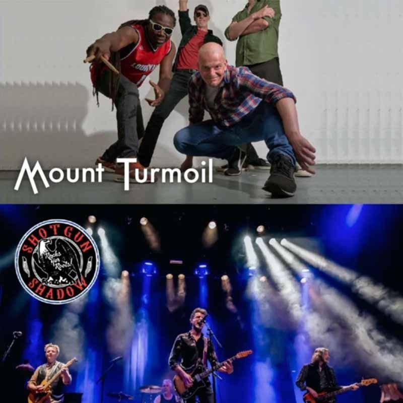 Mount Turmoil is een bijzondere band. Na het succes van hun eerdere EPs is er nu een volledig album in de maak, met niemand minder dan Jannes Van Rossom -- bekend van zijn werk met Sloper, met Mario Goossens (Triggerfinger) en Cesar Zuiderwijk (Golden Earring) -- achter de knoppen.Zanger Arjen Koekoek groeide op met een Amerikaanse moeder. Gitarist Tom Kenter verbleef langere tijd in Londen en San Francisco. Bassist Lazaros Valavanis groeide op in Griekenland, en drummer Eric Louisville heeft Surinaamse roots. Verwacht dus en een breed spectrum aan invloeden, van catchy britpop tot zompige southern rock en alles daartussenin.Mount staat voor de serene kracht van een berg. Turmoil is precies het tegenovergestelde: herrie, tumult en rumoer. Deze tegenstelling is ook te horen in de muziek van Mount Turmoil, die gaat van intieme americana, tot dikke vette grunge rock. Leden van Mount Turmoil stonden eerder op de Zwarte Cross, waren te horen op Radio 2, op Radio 3 bij Giel Beelen. ---Na jarenlang (sinds 1992!!) met veel succes een repertoire gespeeld te hebben van Rock & Roll, Blues, Country en Southern Rock besloten de mannen van Shotgun Shadow het anders aan te pakken. De nummers van The Georgia Satellites en later Dan Baird waren altijd al de big favorites om te spelen, dus waarom geen hele set hiervan samen met eigen songs in dezelfde stijl? En bovendien: Dan is helaas gestopt met touren dus zou het niet te gek zijn “to keep the flame burning” voor alle Dan Baird fans? De antwoorden op deze vragen mogen duidelijk zijn: Shotgun Shadow heeft zich geprofileerd als The Dan Baird Fan band! Heerlijk om te putten uit zoveel geweldig materiaal: Uit de jaren ’80 als frontman van The Georgia Satellites, uit Dan’s solo albums en uit zijn latere bands The Yahoos, The Bluefields en uiteraard Homemade Sin. Alles komt voorbij: stompende Telecaster kletterende rockers, aanstekelijke liedjes en (akoestische) ballads.Precies zoals Dan het altijd zelf heeft gedaan: old school, no nonsens en vol energie. Oh ja, en zeker ook heel leuk voor mensen die Dan Baird niet kennen maar wel houden van Rock & Roll, Blues, Country en Southern Rock! Shotgun Shadow – Dan Baird Fan band• Martijn van Heugten Zang / Gitaar • Richard Cremers Gitaar / Zang • Dirk Snellen Bas • Marco van Dijen Drums / Zang